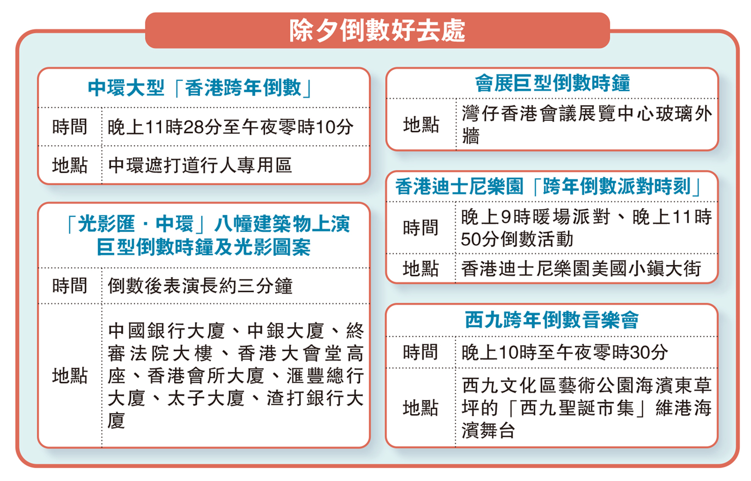 【大公報訊】記者王亞毛報道:今日是大除夕,今晚全港多區都有舉辦跨年倒數活動,為方便市民及訪港旅客出行,港鐵8條路線及部分輕鐵路線今晚將通宵行駛,羅湖口岸將延長服務至凌晨2時,深圳灣口岸亦將改為24小時運作,口岸穿梭巴士、跨境巴士均會在凌晨提供特別路線服務。