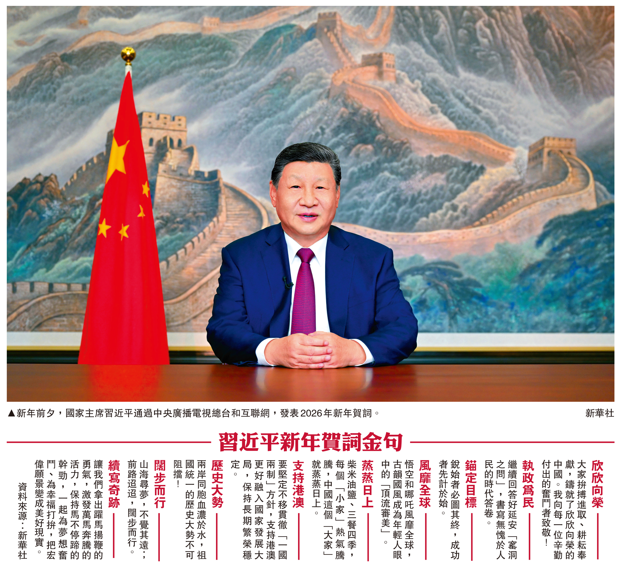 國家主席習近平在京發表2026年新年賀詞:支持港澳更好融入國家發展大局 保持長期繁榮穩定 「十五五」開局之年 乘勢而上躍馬揚鞭