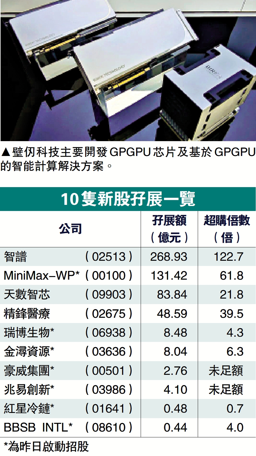 壁仞科技遵循《上市規則》第18C章在港上市。該股昨日公布招股結果,集資總額55.8億元,共47.1萬名散戶認購,其中13.6萬人中籤,超額認購逾2300倍,一手中籤率5%,認購250手可穩中一手,「頂頭槌飛」最多獲派2600股(13手)。