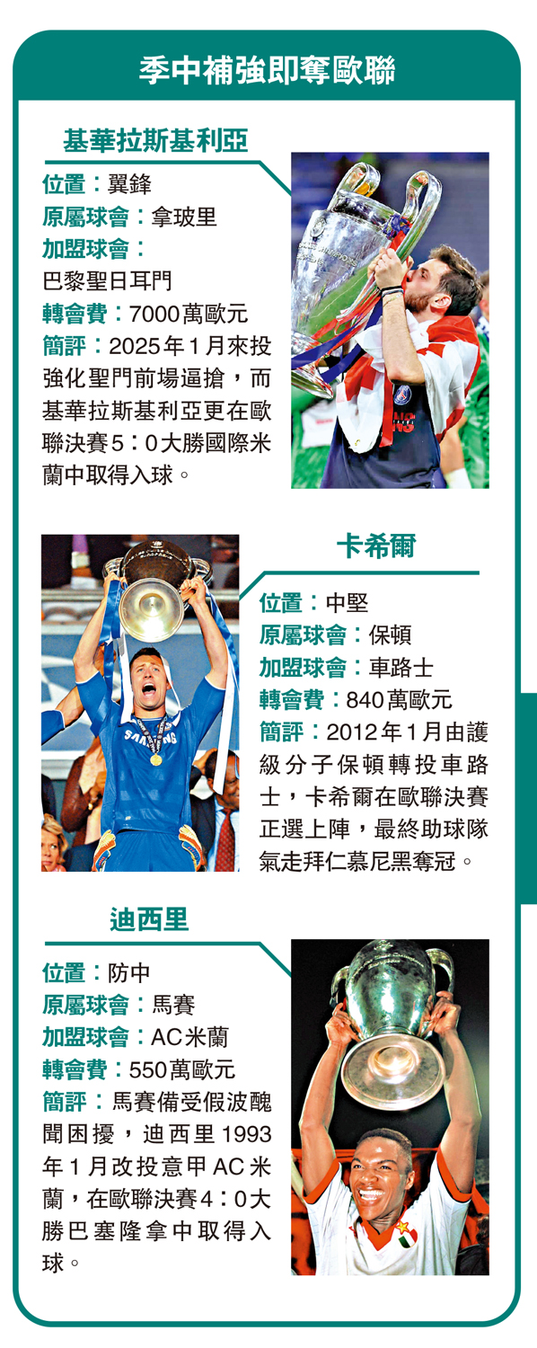 簡評:2025年1月來投強化聖門前場逼搶,而基華拉斯基利亞更在歐聯決賽5:0大勝國際米蘭中取得入球。