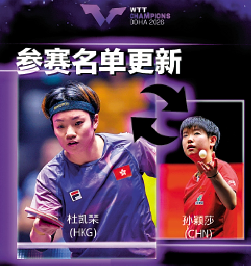 【大公報訊】世界乒乓球職業大聯盟(WTT)宣布,中國乒乓球隊女單世界排名第1位的孫穎莎因傷退出7日展開的WTT多哈冠軍賽,其參賽席位由中國香港球手杜凱琹補上。