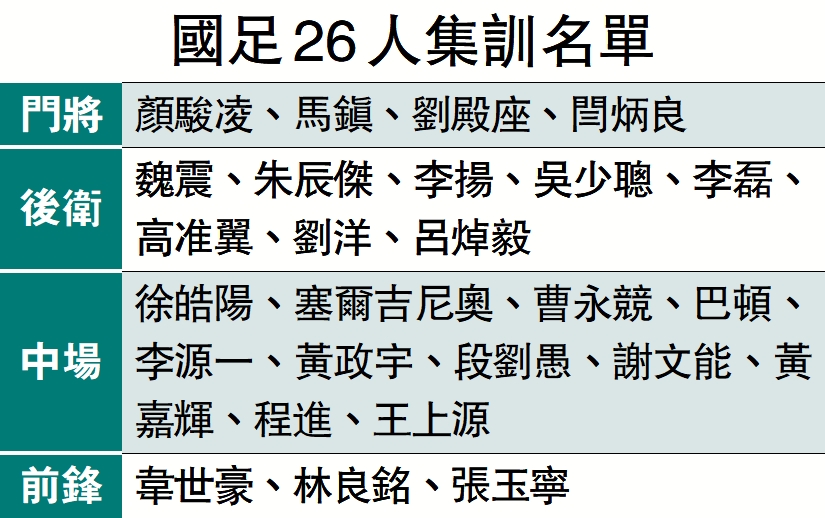 【大公報訊】據新華社報道:中國足協1日公布了中國男足國家隊2026年第1期26人集訓名單,李揚、閆炳良、馬鎮、呂焯毅4名新人入選。這是邵佳一出任國家隊主教練後的首期集訓,他將帶隊於1月4日至27日先後在廣東和阿聯酋迪拜集訓。