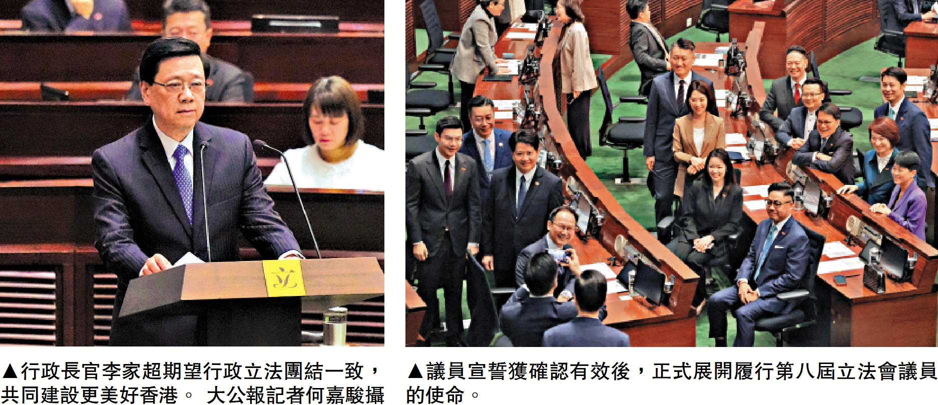 【大公報訊】記者義昊報道:行政長官李家超昨日對新任立法會議員提出三點期盼,希望大家貫徹行政主導和愛國者治港原則相適應的方針;貫徹和遵守《立法會議員守則》;議員議政既要關心個別的微觀需要,亦要考慮社會的整體宏觀利益,有大局觀、國家觀、國際觀。