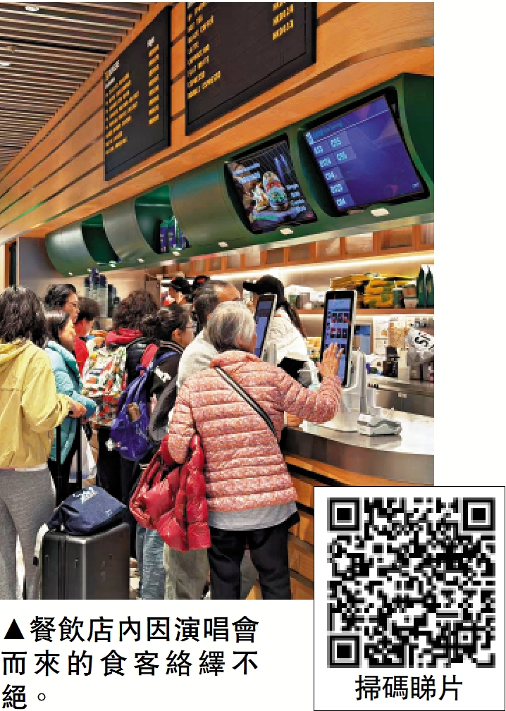 啟德零售館零售主管黃皓荺指出,館內多元的餐飲及娛樂設施能有效延長顧客停留時間,除夕當日零售館客流旺盛,即使演唱會於晚上9時才開始,下午時段已相當熱鬧。她指零售館目前有近80間餐廳,其中30間會於大型活動期間延長營業時間,方便觀眾在演出前後用餐。同時亦因應不同活動,推出不同的主題布置,例如在周深演唱會期間,館內亦設置打卡區及應援布置,並有租戶推出限定菜式或特色攤位,豐富樂迷的整體體驗。\文:李嘉琪 視頻:融媒組
