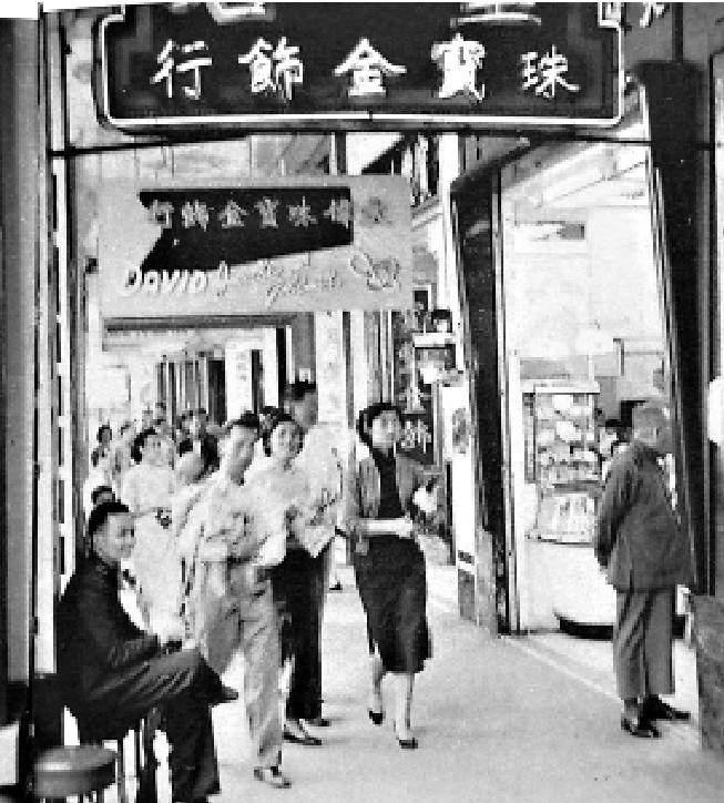 其中一幅拍攝於中上環交界何東行一列地舖的圖片(右圖)頗具時代特色。該區自20世紀初即為傳統金舖集中地區。在圖片左側可見持槍警衛,這類金舖保安在1980年代之前相當常見,多由印巴裔人士擔任並代代相傳。直至1990年代因槍械條例收緊,持槍站崗的街頭景象才變成歷史陳跡。