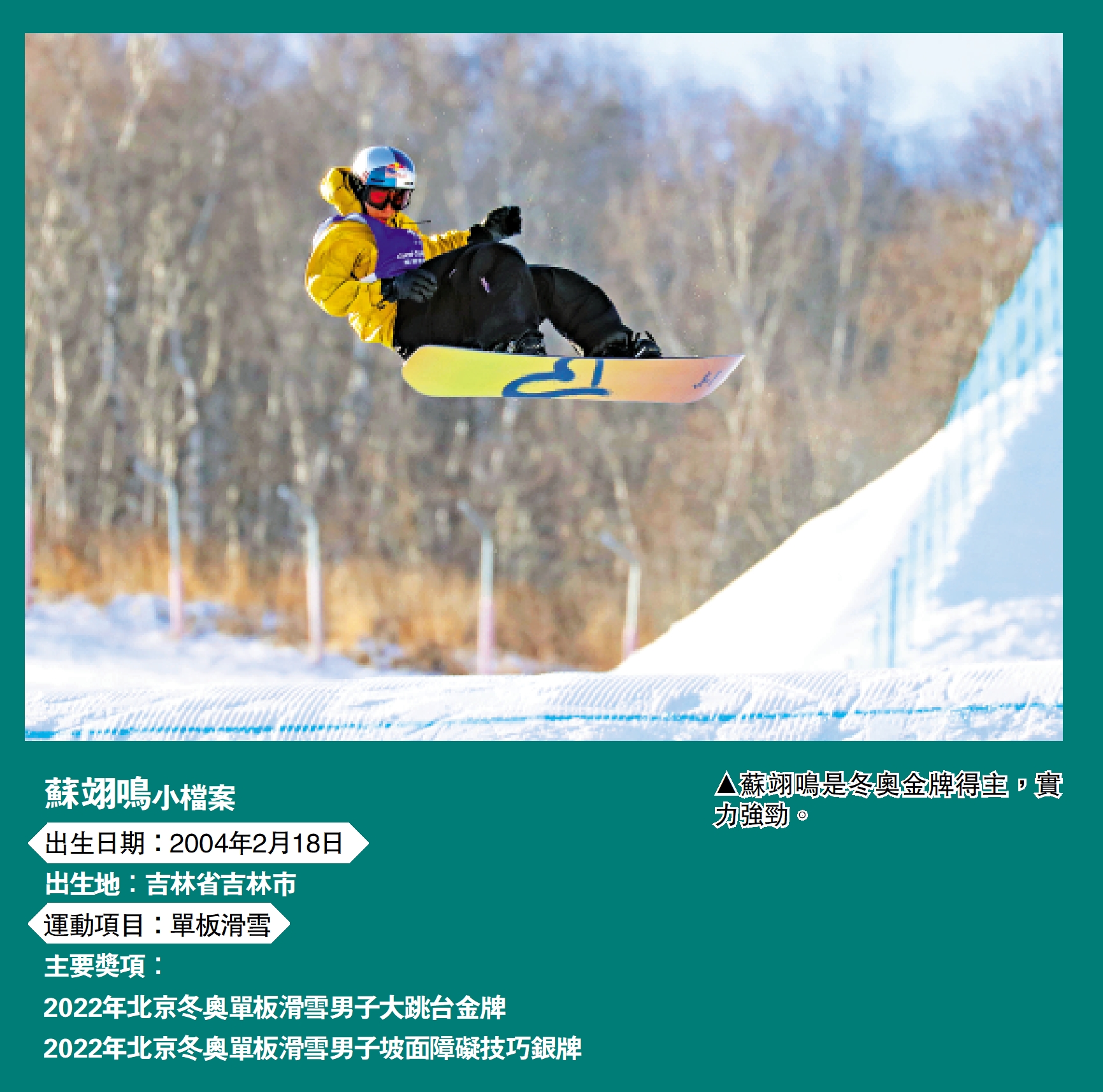 雪上項目原本是中國冬奧軍團的弱勢項目,在北京冬奧會前,國家隊於歷屆冬奧會上僅收穫過一枚雪上項目的金牌。在北京冬奧會的帶動下,中國雪上項目近幾年發展迅猛,在單板滑雪、自由式滑雪、雪車等多個項目上已經逐漸成為世界一流強隊。本屆冬奧會上,以蘇翊鳴、谷愛凌、徐夢桃為首的中國雪上項目軍團,有望為國家隊再添金牌。/大公報特約記者 史玄之