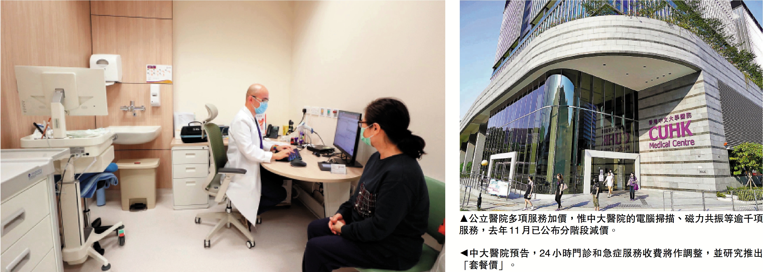 公立醫院服務元旦起調整收費,最少八間私家醫院未跟隨加價,香港中文大學醫院收費則不加反減,繼去年11月分階段下調收費,未來兩個月再有部分服務減價。香港中文大學醫院行政總裁鍾健禮預告,新一輪收費調整或涉及24小時門診和急症服務,也會研究推出「套餐價」,方便市民入院前,知悉感冒、發燒等輕微疾病的整體醫療收費。\大公報記者 馮錫雄