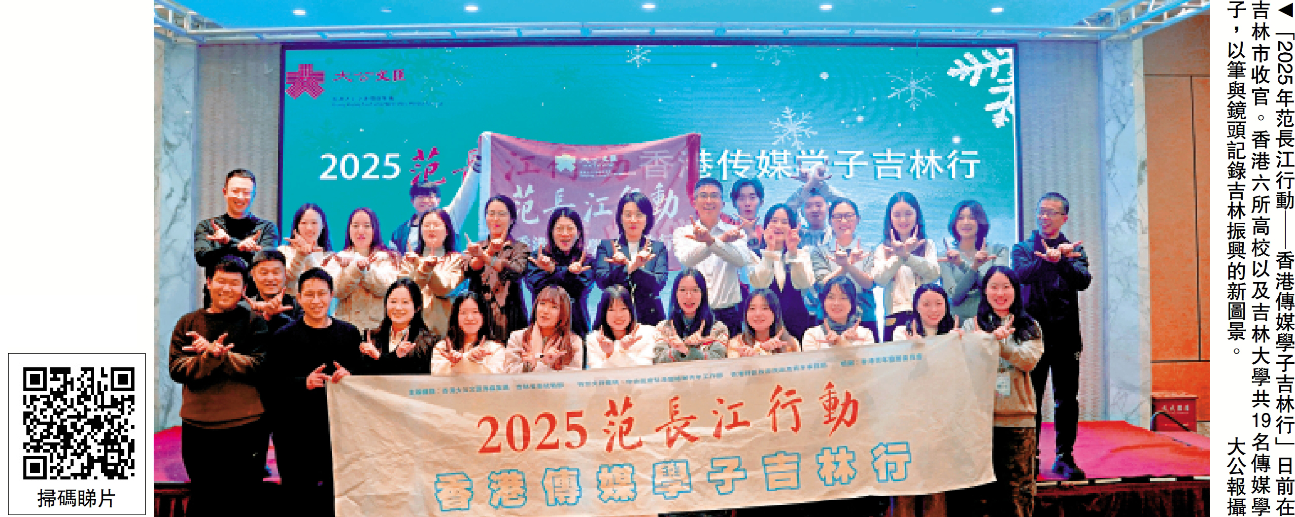 「當腳步真正踏上雪原,歷史與現實、冰雪與熱情,便不再是書本上的概念。」「2025年范長江行動─香港傳媒學子吉林行」日前在吉林市收官。五天時間裏,來自香港6所高校以及吉林大學共19名傳媒學子,並肩行走在長春、吉林兩地,走進歷史現場、工業一線與冰雪世界,在行走中理解中國、在採訪中讀懂時代。