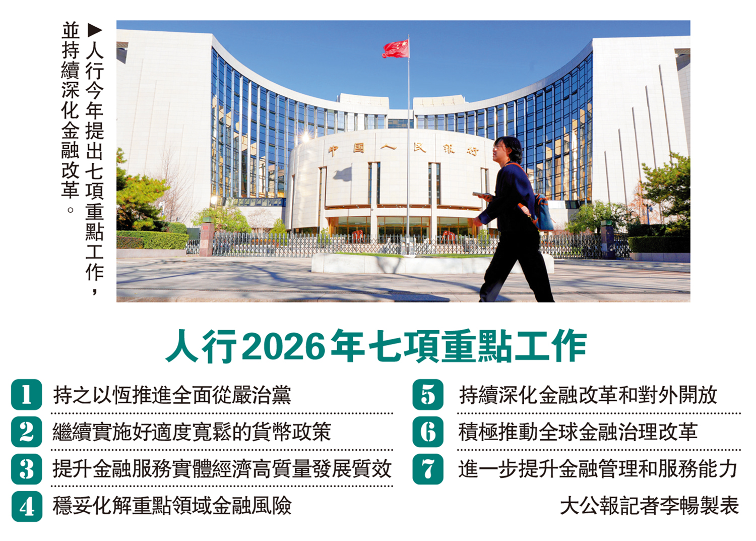 【大公報訊】記者李暢北京報道:中國人民銀行1月5日至6日召開2026年人行工作會議,會議提出七項重點工作。其中,在持續深化金融改革和對外開放方面,繼續優化「債券通」「互換通」機制安排。支持上海國際金融中心建設,鞏固和提升香港國際金融中心地位,維護香港金融市場的穩定和繁榮發展。歡迎更多符合條件的境外主體發行熊貓債。擴大快速支付系統互聯範圍,推進二維碼互聯互通合作。