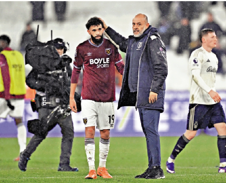 【大公報訊】英超7日上演韋斯咸主場對諾定咸森林,臨危受命的新帥紐奴未能拯救韋斯咸,今仗以1:2輸給舊東家森林,賽後韋斯咸錄得近10場聯賽不勝,紐奴已被列為繼阿莫林後另一個被炒主帥大熱。諷刺的是,紐奴賽前還安慰被曼聯辭退的葡萄牙同鄉阿莫林之餘,表示「這就是這個行業的運作方式」。