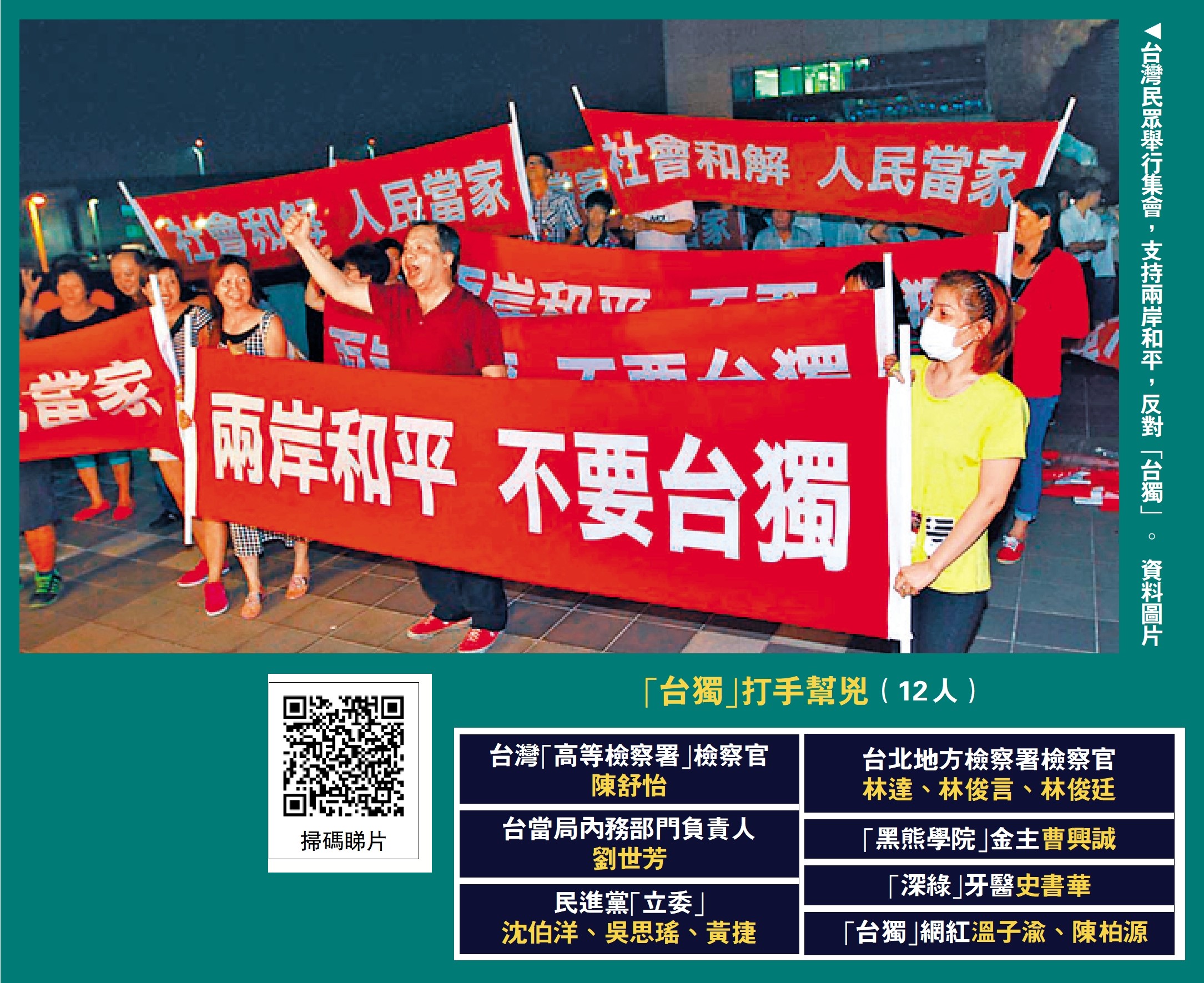 截至目前,國台辦已公布「台獨」頑固分子14人,「台獨」打手幫兇12人。