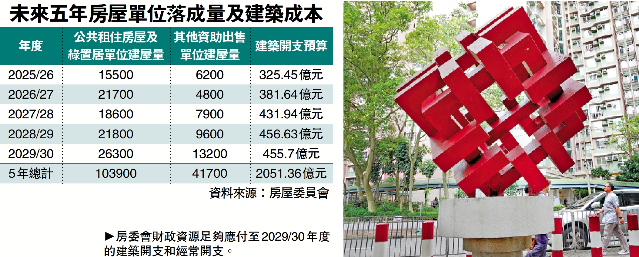 【大公報訊】記者王亞毛報道:房委會表示,目前建築成本仍是最大的開支,根據2024/25年度批出的新合約成本估算,在2026/27年度建造一間公屋的成本約為106萬元,高於上一年度的97萬元,建造一間居屋的成本約為110萬元。房委會財務小組委員會主席麥萃才表示,相關數字與投標價、屋苑規模、地盤環境如打樁深度、是否有斜坡等因素有關。