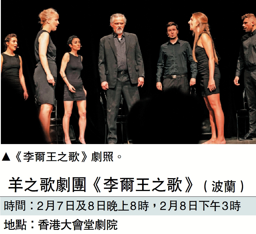 【大公報訊】波蘭羊之歌劇團將於2月上旬首度來港,為康樂及文化事務署的「歐洲劇團雙聲回響」帶來愛丁堡藝穗節首獎作品《李爾王之歌》。此劇將莎士比亞的經典悲劇重新演繹成一部震撼心靈的戲劇式清唱劇,將莎士比亞的文本片段與原創音樂、多聲部合唱、演員的肢體動作和簡約的舞台交織在一起,構成一種詩意盎然的敘事方式,以當代視角凝煉出《李爾王》的情感與精神本質,打造出一場與觀眾同頻共振的沉浸式體驗。門票現於城市售票網(www.urbtix.hk)發售。