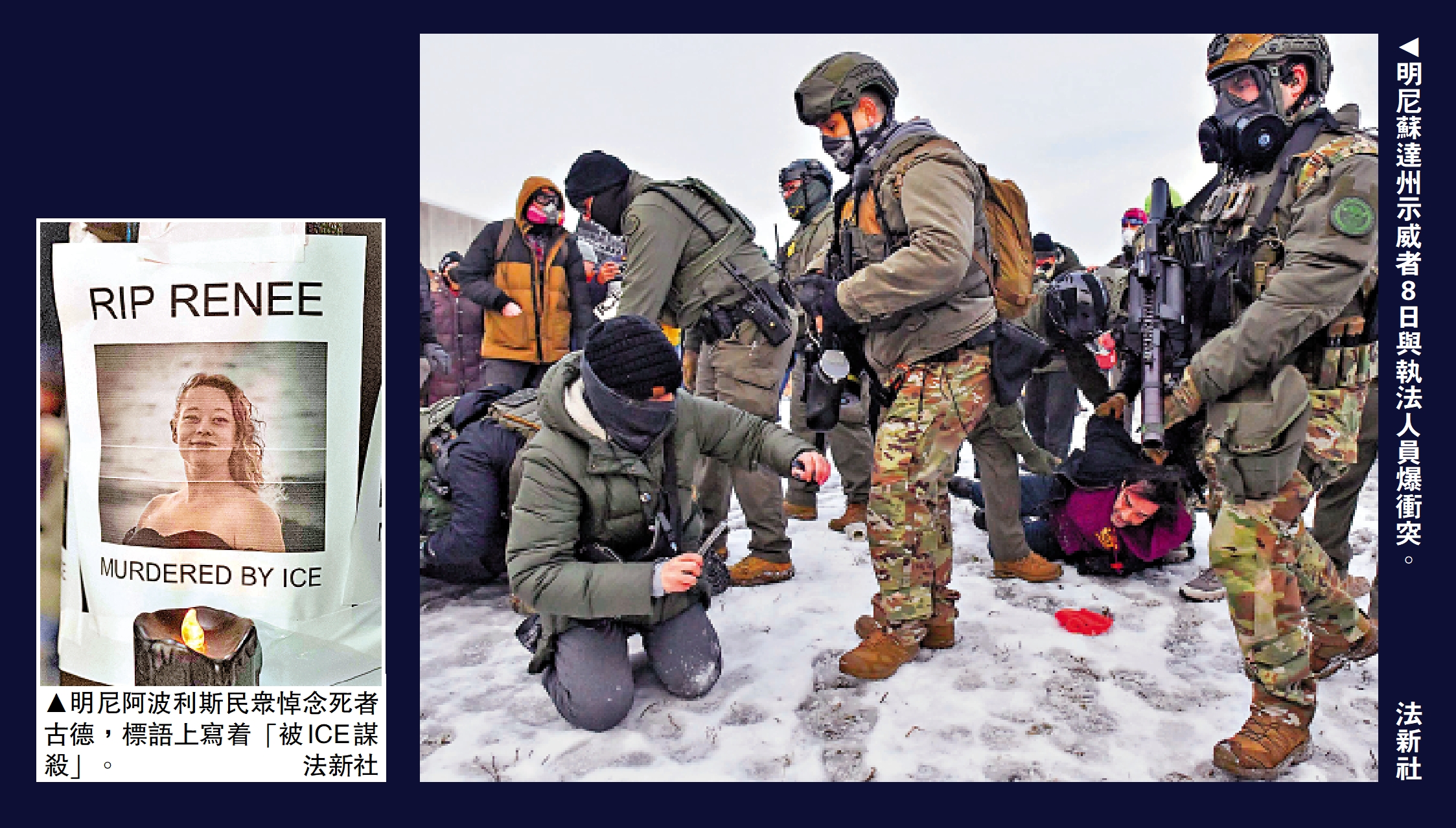 美國當局針對移民的執法行動再釀死亡事件。當地時間1月7日,美國移民與海關執法局(ICE)人員在明尼蘇達州明尼阿波利斯市開槍打死一名37歲女子,引發外界憤怒。特朗普政府辯稱開槍屬於「自衛」,並指控該女子試圖「開車衝撞」執法人員。明尼阿波利斯市長弗雷則怒批ICE執法濫權,並要求ICE「滾出去」。這是特朗普任內又一宗涉及掃蕩移民行動致死事件,引發全美多地爆發抗議活動,分析指,事件將進一步加劇美國社會的分裂。