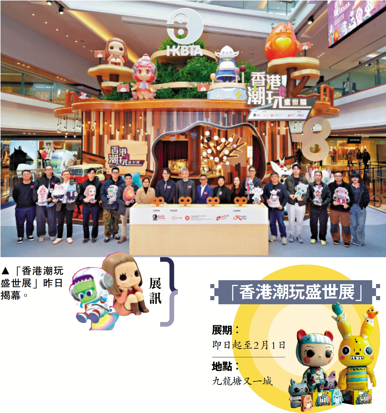 【大公報訊】由文化體育及旅遊局(文體旅局)轄下文創產業發展處資助的「香港潮玩盛世展」昨日(1月8日)在九龍塘又一城揭幕,展期至2月1日,供公眾免費入場參觀。