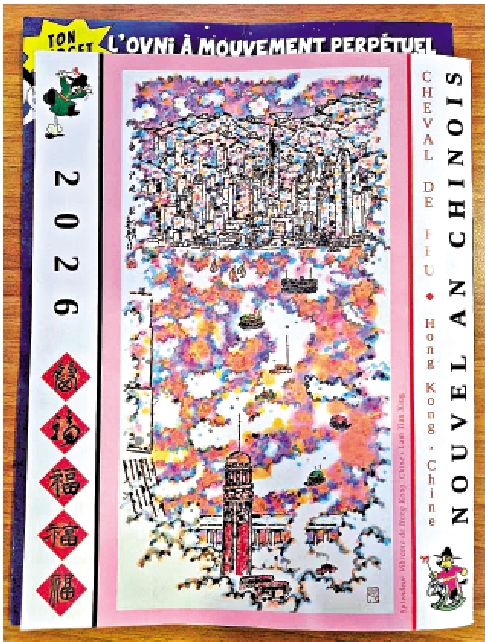 【大公報訊】香港畫家林天行「香港系列」作品,成為最新一期法國經典漫畫雜誌《PIF Gadget》的「雙封面」之一。林天行表示,本次合作歷時數月,是國際藝術界對香港視覺藝術的獨特魅力與活力的認可,「我們與《PIF Gadget》團隊反覆溝通、精益求精,最終封面選用了畫作《香江煥彩》,融合我的五款『福』字書法,寓意五福臨門,並與雜誌經典角色『小狗比夫』幽默造型巧妙結合,創造出一場東西方美學的精彩對話。」