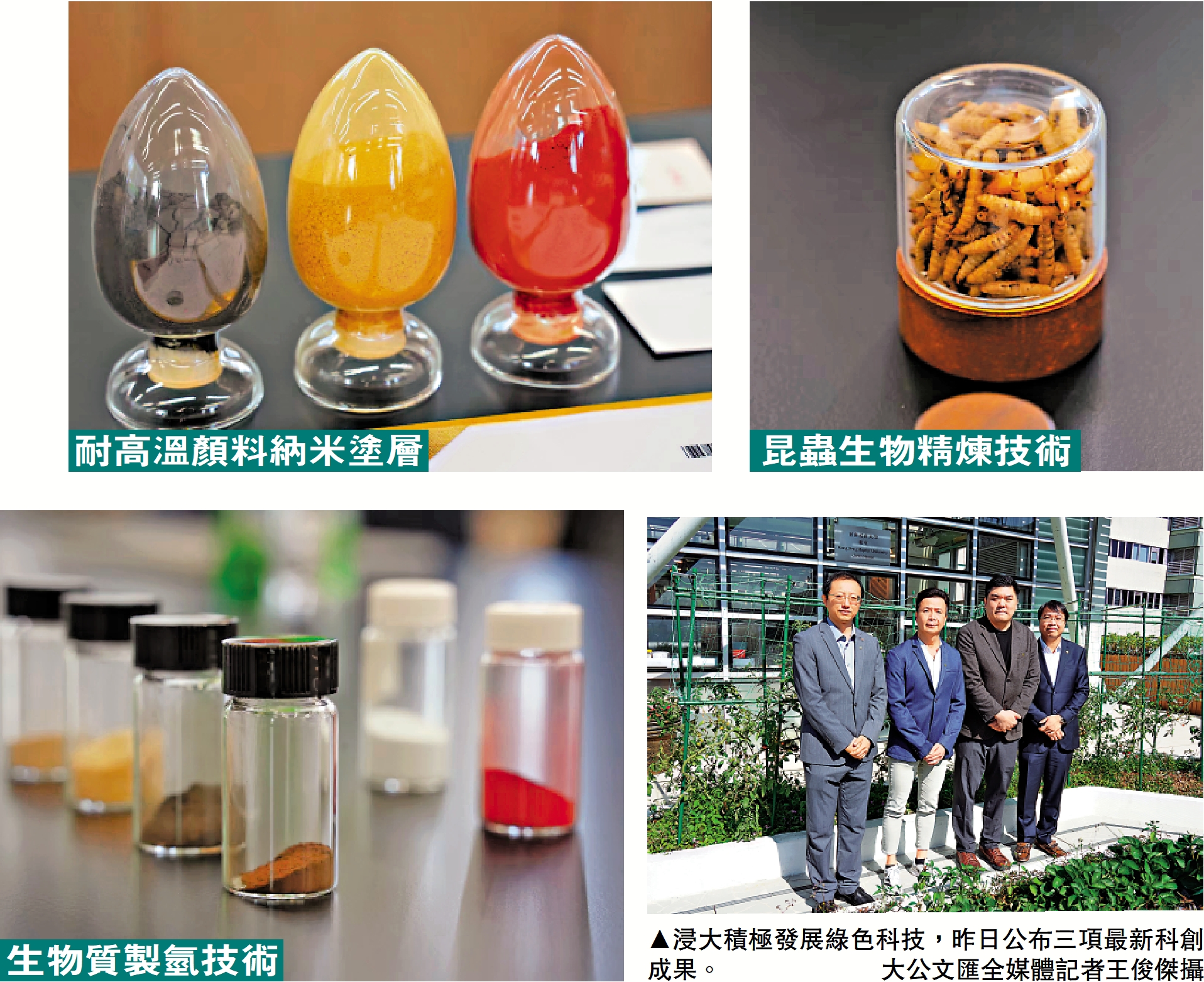 香港浸會大學近年將綠色科技列為重點發展方向之一,並牽頭聯合12間國際頂尖科研機構組建「國際綠色科技聯盟」,推動科研成果由實驗室走向實際應用。浸大昨日公布三項最新的綠色科創成果,包括昆蟲生物精煉技術,以生物技術將塑膠及廚餘再生為高價值材料;革命性生物質製氫技術,以生物廢棄物生產氫氣,大幅降低氫氣生產成本;以及超聲共振納米纖維塗層技術,有助減少材料更換及消耗。\大公報記者 郭如佳