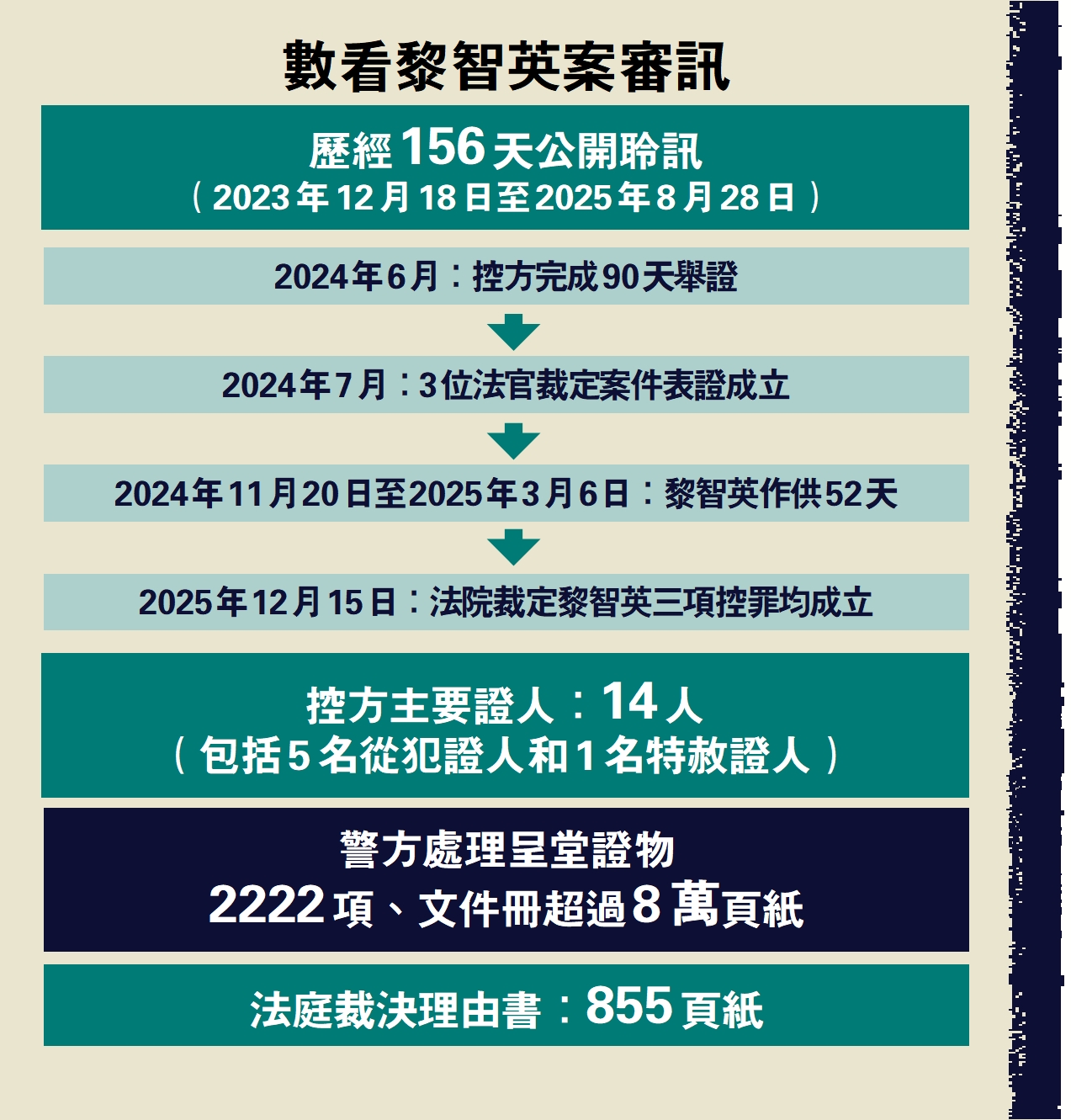 法律組織「香港律師同行」表示,法庭嚴謹公正地審視了每項證據及證人供詞,不僅完成了對事實的認定,更通過對黎智英證供詳細剖析,向社會展示了香港司法制度在面對複雜案件時,堅守「以證據為本」的核心原則。