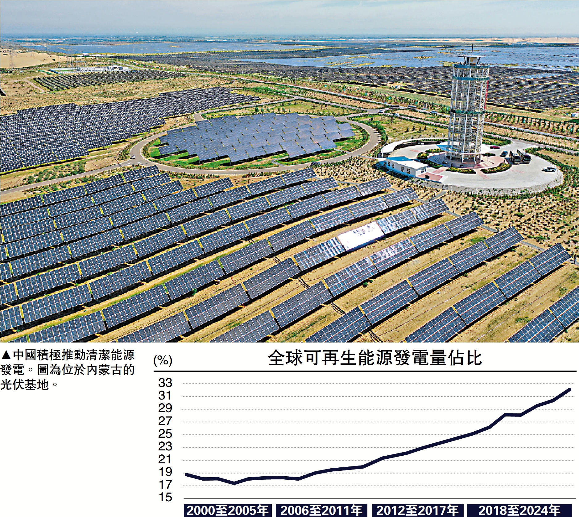 二是清潔能源技術進步。IEA統計顯示,低排放電力的投資在五年內幾乎翻倍,其中太陽能光伏技術是主要驅動力。到2025年,全球在太陽能的支出達4500億美元,成為最大的能源投資類別。中國在可再生能源發電領域領先世界。2024年中國可再生能源發電佔總發電量的35%,而風電和光伏發電總量佔總發電量19%。而且,中國加大對「一帶一路」沿線國家和地區的清潔能源項目支持,合作推進清潔能源技術研發。尤其是在發展中國家,越來越多的太陽能投資是由於中國的太陽能面板價格下降。同時,核能技術取得新進展,新核電站的建設和舊站的翻新支出預計將超過700億美元。隨着AI等行業快速崛起,算力基礎設施建設加快,電力需求猛增,更有賴於推動清潔能源發展。而AI技術對提升能源使用率及拓展清潔能源發展空間,「AI+」有望加速融合節能減排、清潔能源、綠色製造等低碳技術,優化能源調度,賦能清潔能源核心技術取得新的突破。