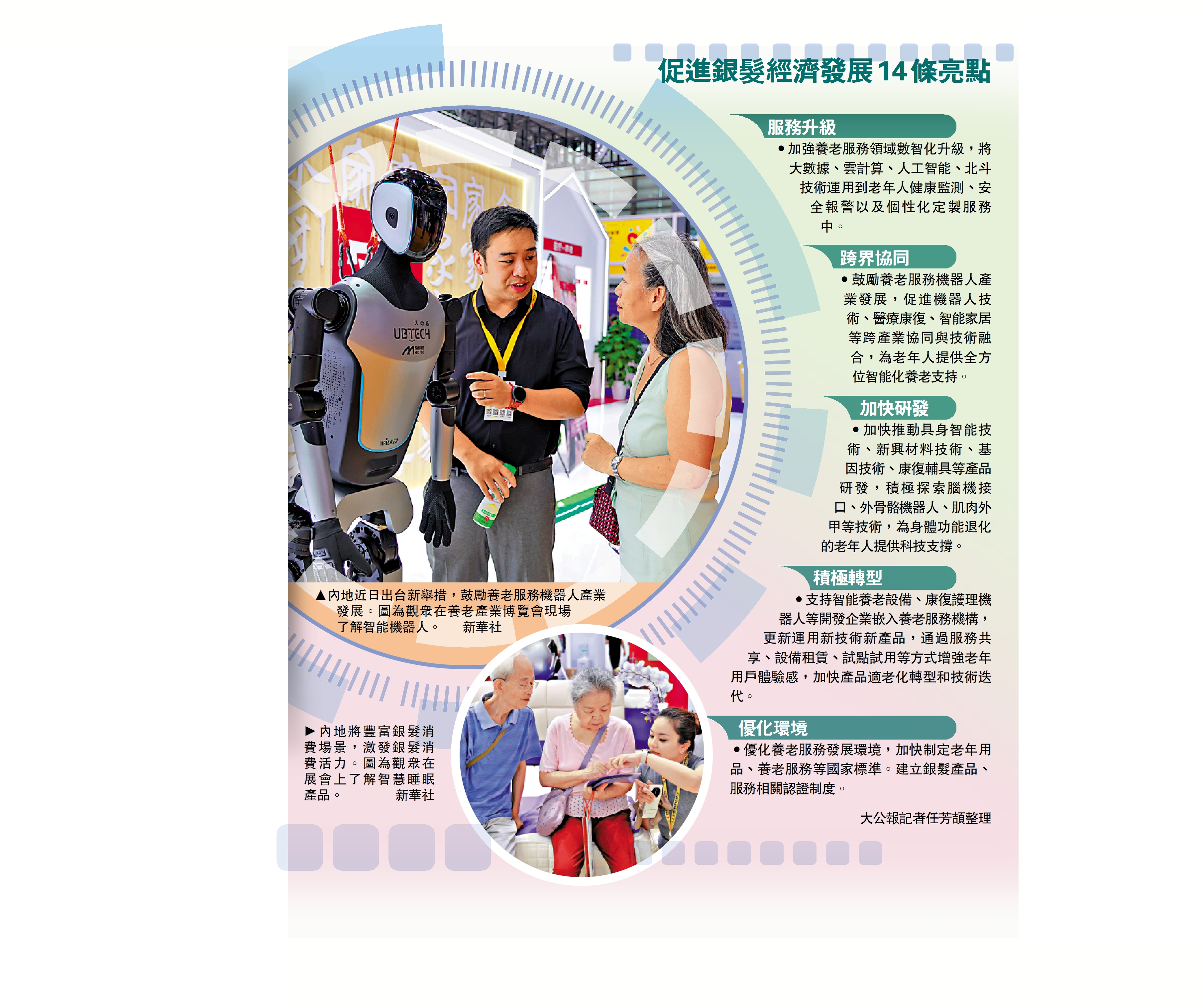 •鼓勵養老服務機器人產業發展,促進機器人技術、醫療康復、智能家居等跨產業協同與技術融合,為老年人提供全方位智能化養老支持。