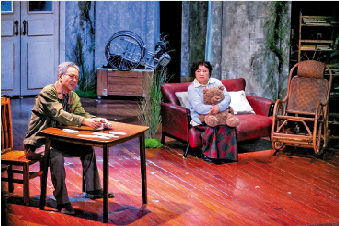 戲一開場,初來老人院的FONSIA,出場時抱着一隻玩具熊哭泣。無疑,玩具熊調動了觀眾的注意力,我不免要去猜,FONSIA和玩具熊之間的故事。契科夫有過金科玉律般的論調:「如果在舞台上,第一幕時掛着一把槍,最後這一幕槍一定要響。」不得不說,玩具熊這把並沒有響過的「槍」,讓我走了神。