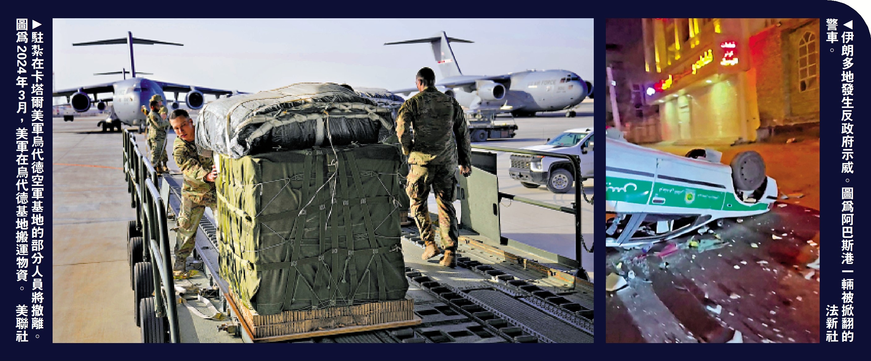 【大公報訊】多間外媒14日引述美國官員稱,鑒於中東地區緊張局勢加劇,美國正從其在中東的多個主要基地撤出部分人員。卡塔爾國際媒體辦公室14日發表聲明,證實美軍駐紮在卡塔爾烏代德空軍基地部分人員將撤離,並表示相關舉措是為應對「當前地區緊張局勢」。