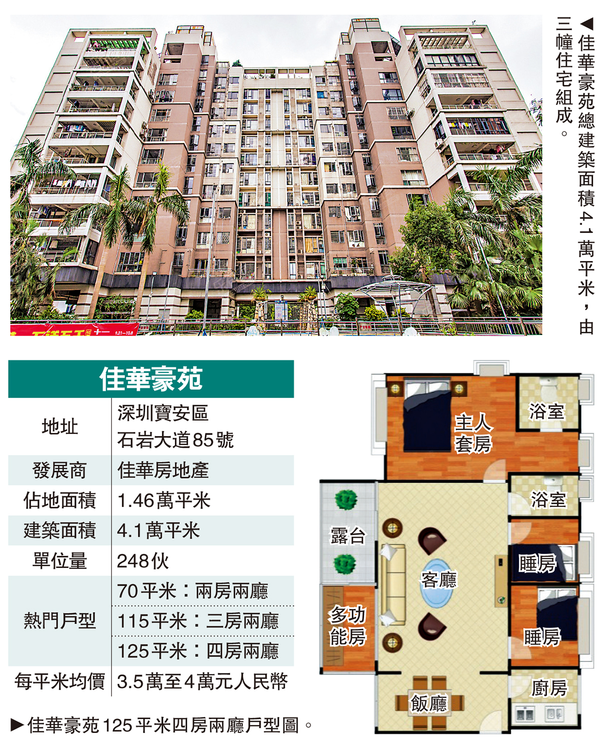 佳華豪苑作為石岩街道的代表性商品房,憑藉合理的規劃與成熟配套,成為區內的置業熱門選擇。項目位於石岩大道西側,總建築面積4.1萬平米,由3幢14至18層高住宅組成,單位量248伙,地積比率僅2.8倍,綠化率高達60%,為住戶提供了低密度、高綠化的舒適居住環境。