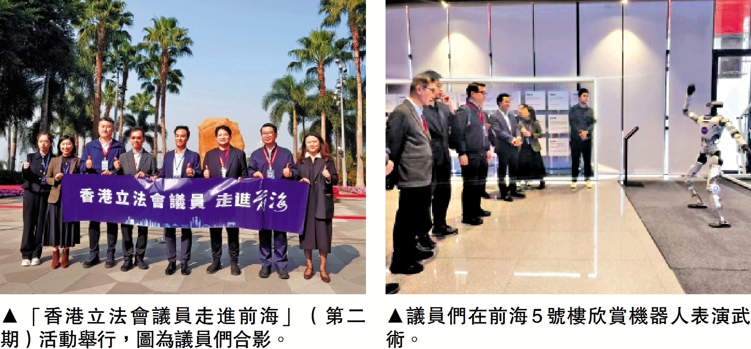 1月17日,「香港立法會議員走進前海」(第二期)活動圓滿舉行。為支持香港更好融入和服務國家發展大局,密切深港兩地務實聯繫,搭建政企交流合作橋樑,助力港企港人拓展內地發展空間,前海管理局特邀首次當選的文穎怡、江旻憓、吳英鵬、李家駒、姚銘、洪錦鉉、陳博智、黃永威、黃錦良、譚鎮國十位香港立法會議員組成參訪團到訪前海,共赴深港深度融合發展之約。