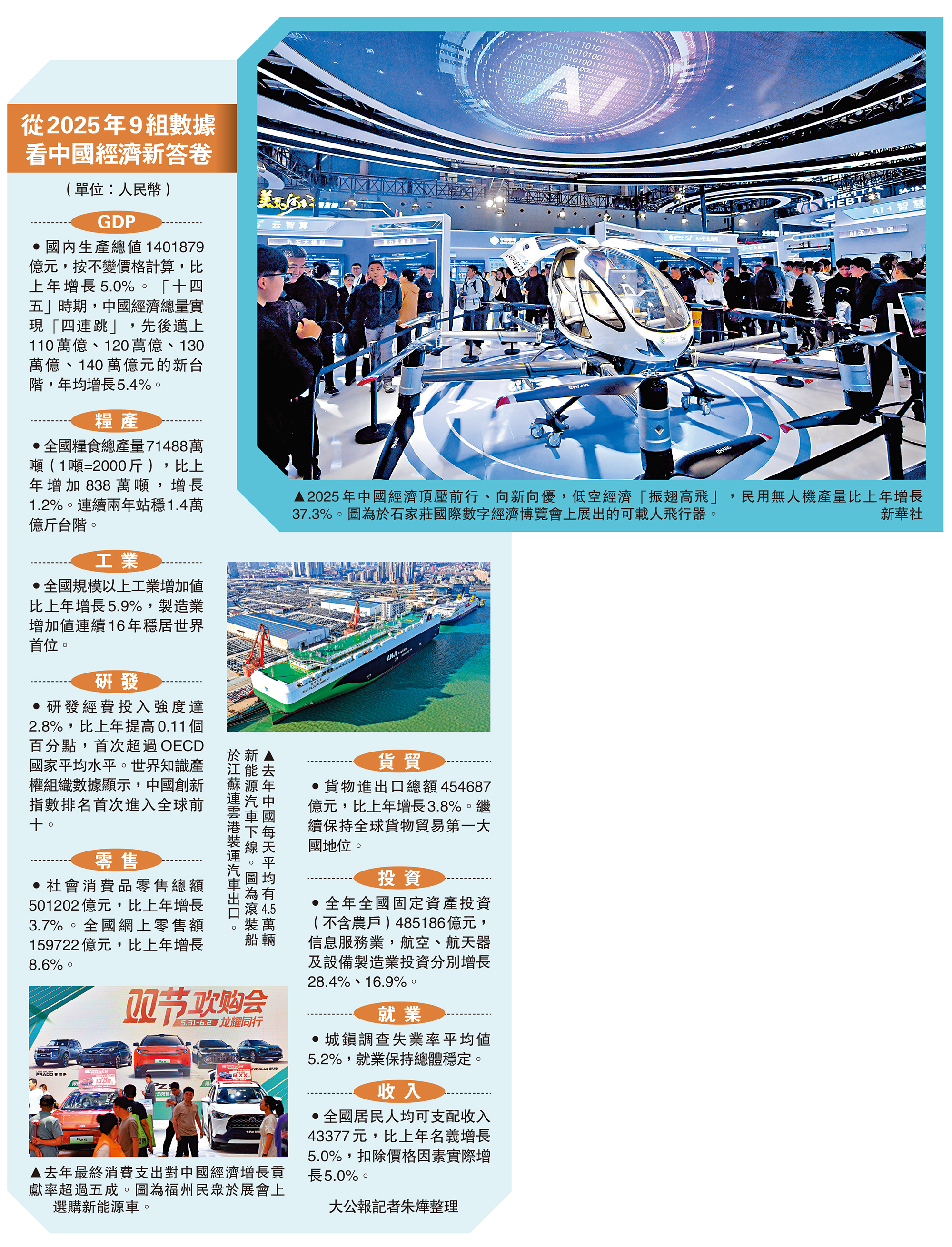 •國內生產總值1401879億元,按不變價格計算,比上年增長5.0%。「十四五」時期,中國經濟總量實現「四連跳」,先後邁上110萬億、120萬億、130萬億、140萬億元的新台階,年均增長5.4%。
