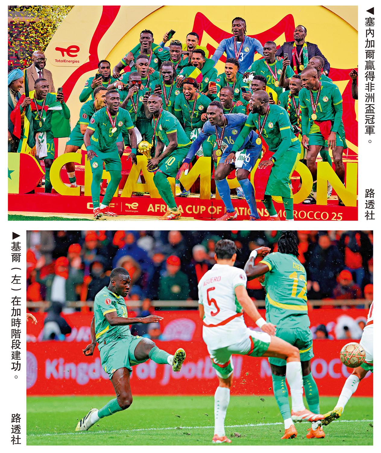 【大公報訊】記者張銳報道:塞內加爾於19日凌晨舉行的非洲國家盃決賽中,經過加時賽以1:0擊敗東道主摩洛哥,繼2021年後,贏得隊史第二座冠軍獎盃。