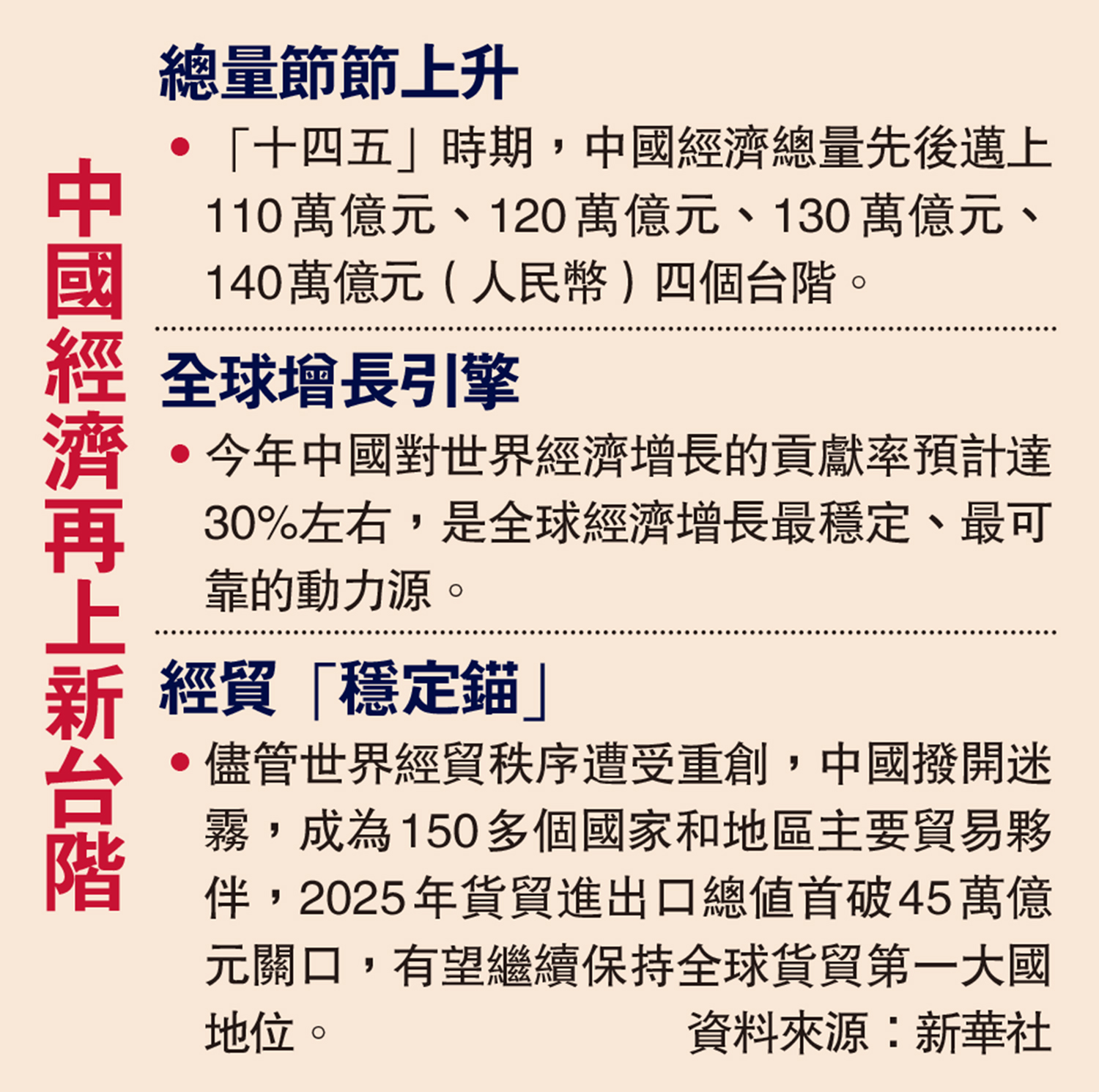 【大公報訊】據新華社報道:國家統計局昨日發布數據顯示,2025年中國國內生產總值(GDP)1,401,879億元(人民幣,下同),首次躍上140萬億元新台階,按不變價格計算,比上年增長5%。