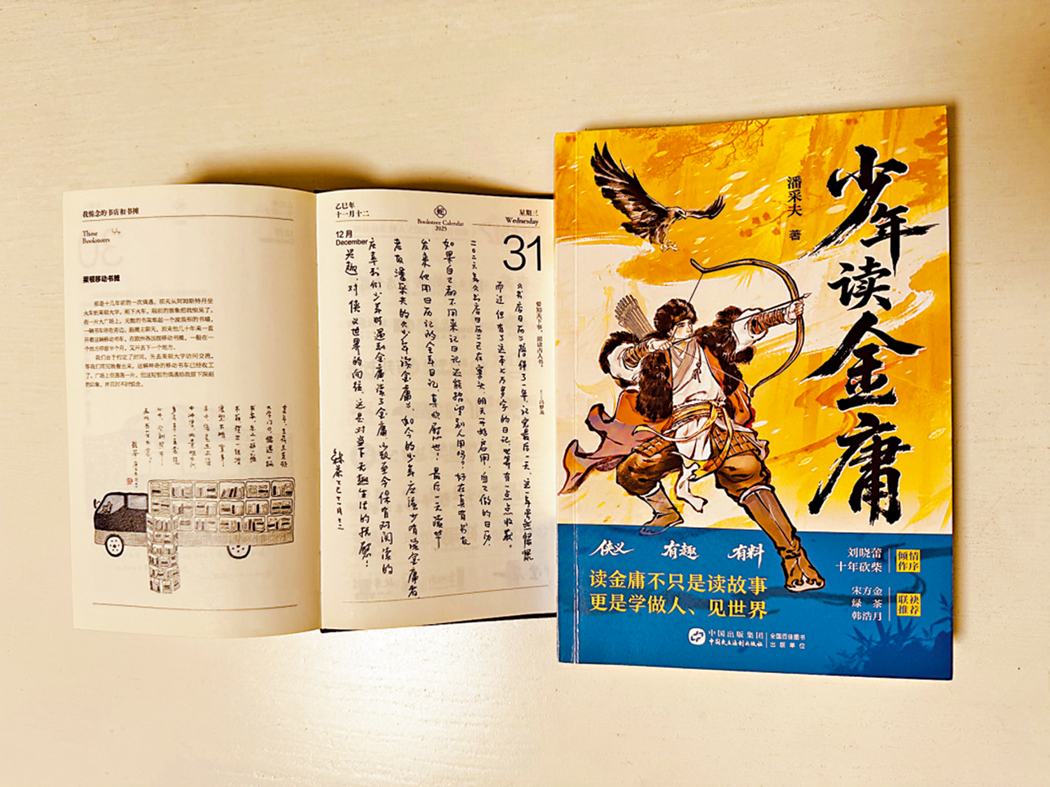 「20251231 乙巳十一月十二:《書店日曆》陪伴了一年,記完最後一天,這一年雖然碌碌而過,但有了這本六萬多字的日記,也算有一點點收穫。二○二六年《書店日曆》已在案頭,明天開啟,自己做的日曆如果自己都不用來記日記,還能指望別人用嗎?好在真有書友發來他用日曆記的全年日記,真欣慰也。最後一天讀畢老友潘采夫的《少年讀金庸》,如今的少年應該少有讀金庸者,慶幸我們少年時遇到金庸,讀了金庸,以至於至今保有對閱讀的興趣,對俠義世界的嚮往,這是對當下無趣生活的一種撫慰。」