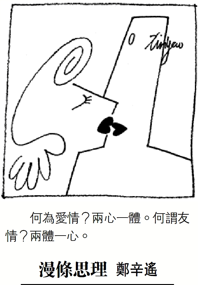 何為愛情?兩心一體。何謂友情?兩體一心。