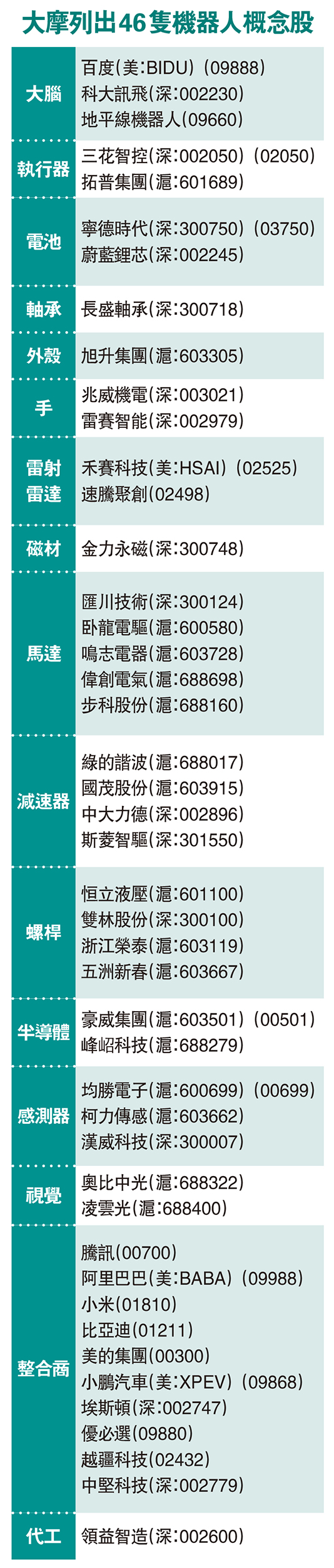 圖:大摩列出46隻機器人概念股