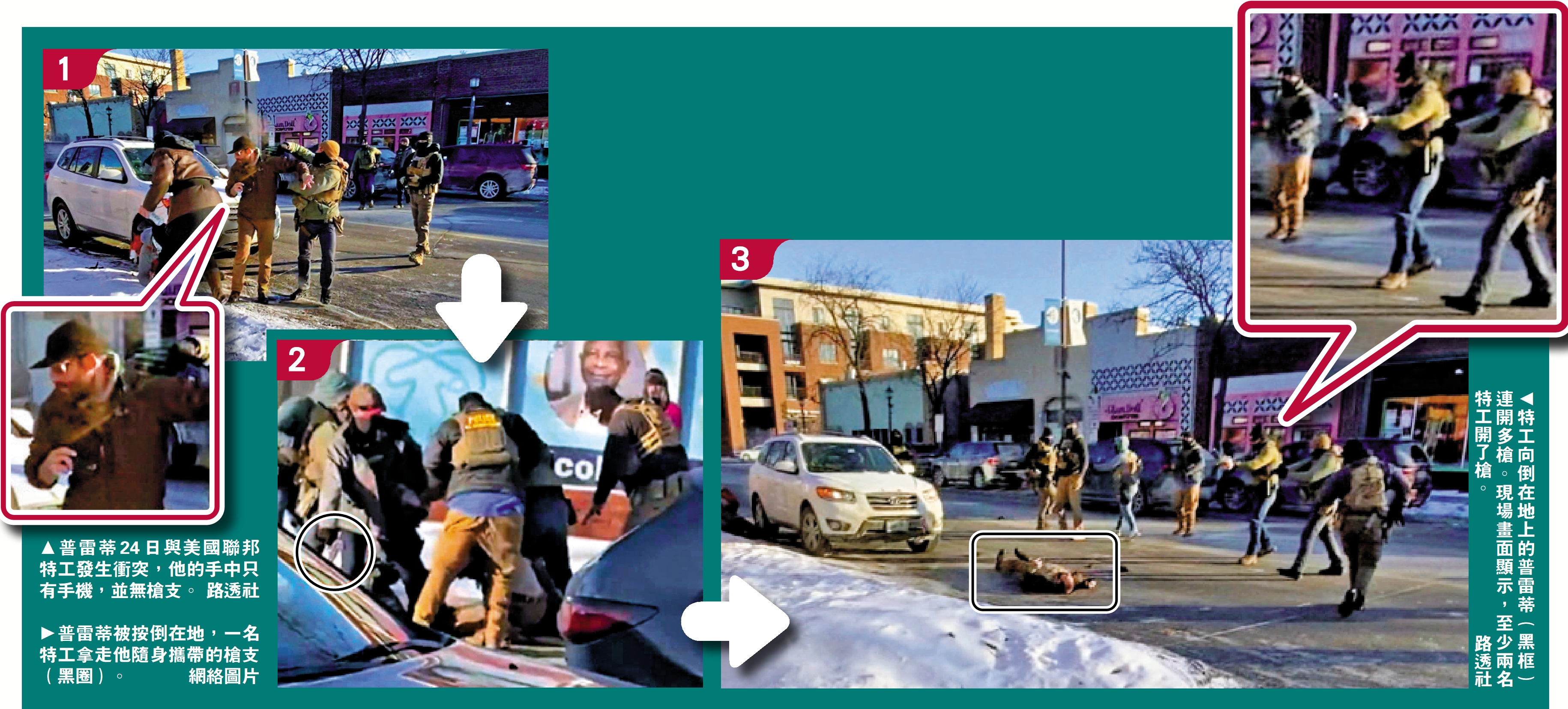【大公報訊】當地時間24日上午,37歲男子亞歷克斯·普雷蒂在明尼阿波利斯街頭與搜捕「非法移民」的邊境巡邏隊特工發生衝突,被特工開槍射殺。事發後,旁觀者和附近居民與聯邦特工爆發激烈衝突,特工用辣椒噴霧、催淚彈、震爆彈等驅散人群。隨後,數百人從該市各處前往案發地點,用垃圾桶等封鎖事發街道,並舉行反對特朗普政府移民執法行動的示威活動。美國首都華盛頓、洛杉磯、三藩市等地亦舉行示威活動。