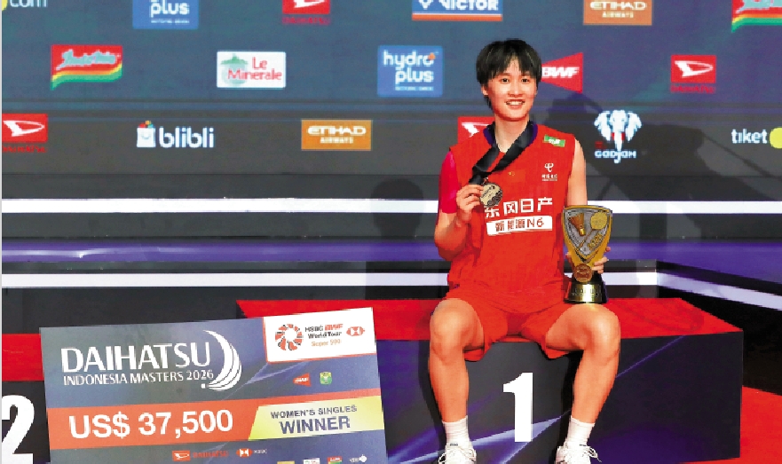 【大公報訊】記者朱家立報道:世界羽聯巡迴賽超級500賽事─2026印尼羽毛球大師賽25日舉行決賽日賽事,國家隊名將陳雨菲在女單決賽中以23:21、21:13擊敗泰國新星碧查夢,奪得個人新年首冠,亦是國家隊在2026年的首個女單冠軍。