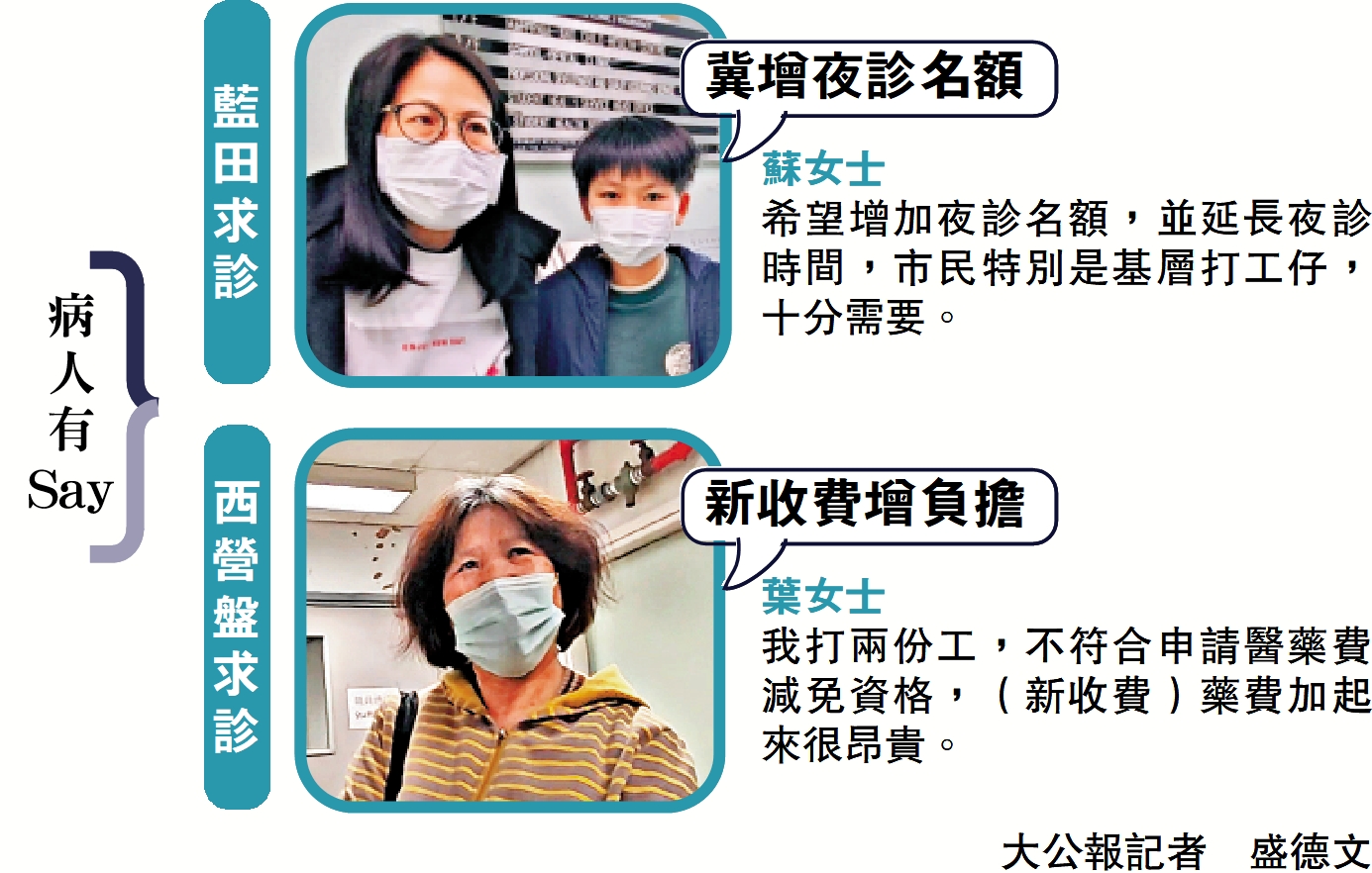 希望增加夜診名額,並延長夜診時間,市民特別是基層打工仔,十分需要。