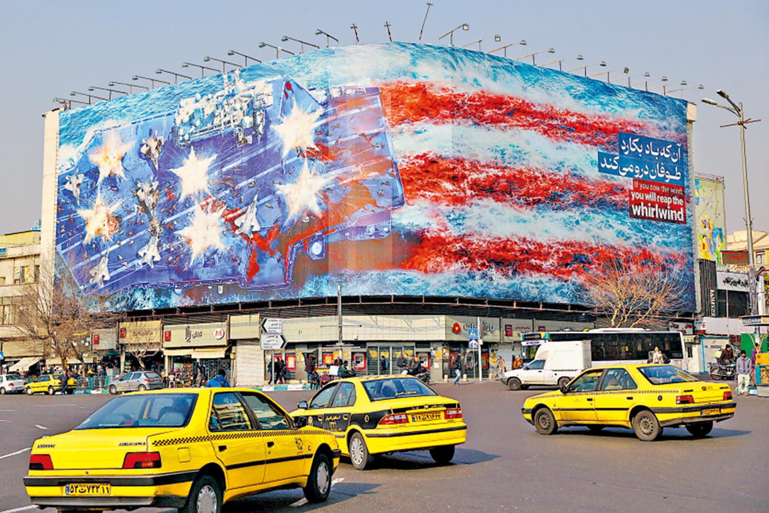 美伊關係緊張之際,伊朗首都德黑蘭市中心廣場一幅新壁畫揭幕,顯示美軍航母甲板上,停放着數架被摧毀的戰機,並配有波斯語和英語標語:「種下風者,必收穫風暴。」(意為惡有惡報)直接警告美國不要對伊朗發動軍事打擊,否則伊朗必將反擊。伊朗總統佩澤希齊揚警告,由美國或以色列發起、針對哈梅內伊的任何襲擊,都將被視為針對伊朗的全面戰爭。