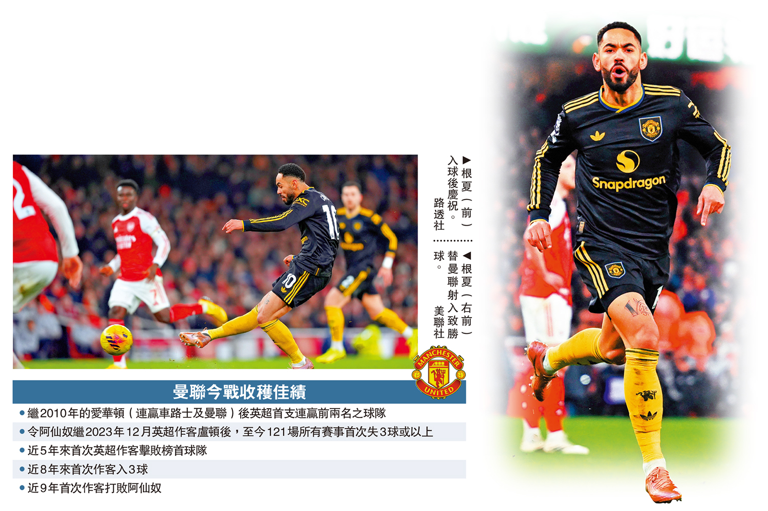 阿仙奴「自毀長城」夢魘再現?該隊於26日凌晨英超主場迎擊曼聯,在領先之後表現卻突然走樣,最終在對手射入兩個「世界波」之下以2:3吃敗,近3輪聯賽只獲2分,在隨後的曼城與阿士東維拉本輪雙雙奏捷之下,目前榜首領先優勢已減至4分;之前阿仙奴曾連續兩季在大好領先形勢下「自爆」而斷送英超錦標予曼城,如今難免令球迷有一種似曾相識的不祥預感,而球隊今仗防守亦罕有地連番出錯,令人懷疑球員仍未有足夠抵住壓力的強大心理質素。\大公報記者 譚德龍