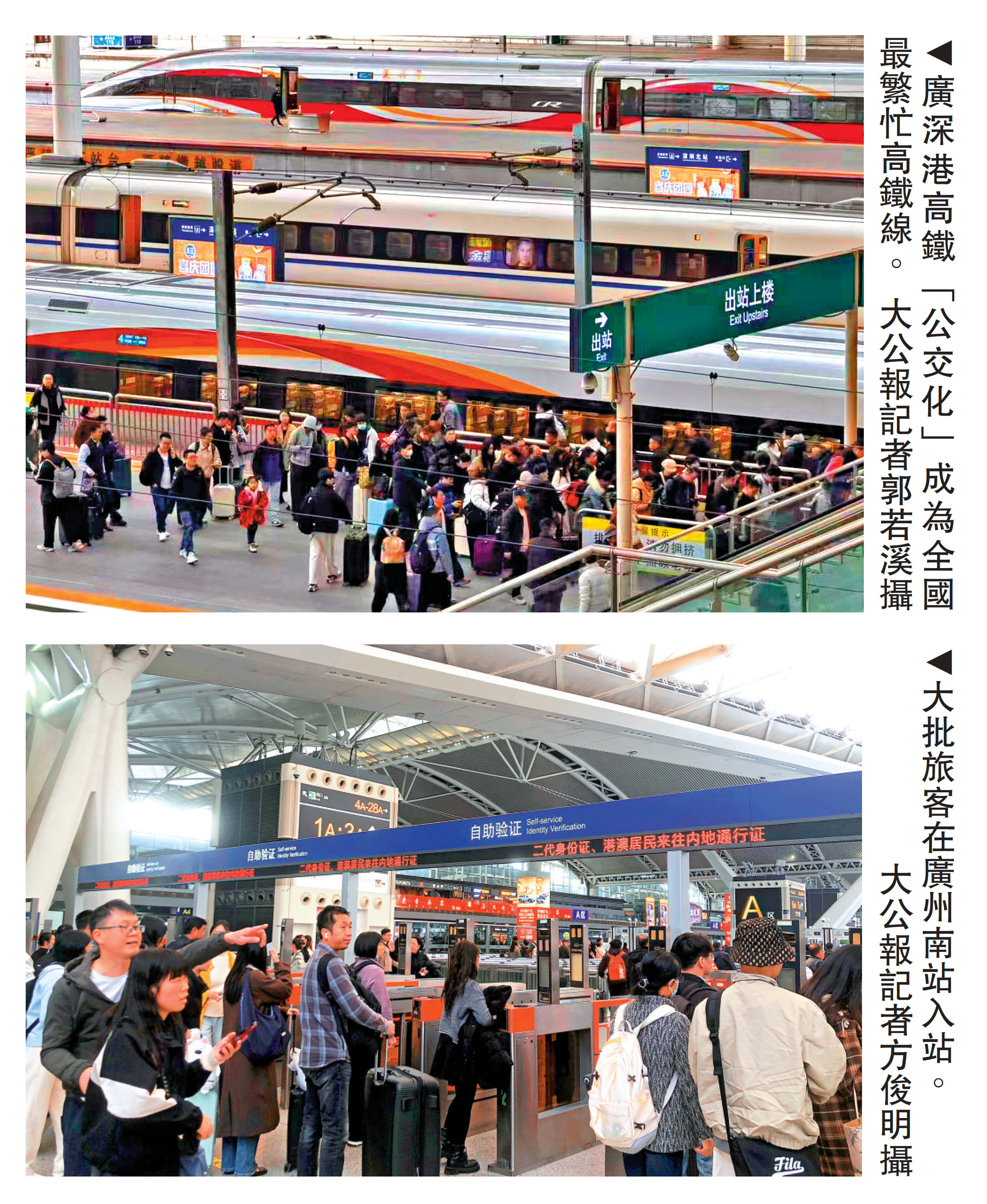 據介紹,國鐵各鐵路局擔當的所有過港列車升級為復興號動車組,在速度、舒適度、智能化服務等方面全面提升。針對跨境客流增多,深圳北站、福田站力推「四通」服務:鐵路通、深港通、粵語通、英語通,保障跨境旅客在購票、候車、換乘等各環節溝通無障礙。同時,進一步優化廣深港高鐵「靈活行」「計次票」服務的辦理指引,通過清晰的標識和工作人員協助,幫助旅客實現便捷購票、改簽,提升出行體驗。在深圳龍華居住的馮女士,早晨從龍華家中出發,在深圳北站乘坐高鐵前往香港西九龍站,再轉乘地鐵至開會地點。下午會議結束後,她又沿着相同路線返回。面對商務行程的不確定性,高鐵的「靈活改簽」功能幫了大忙。\大公報記者 方俊明 郭若溪