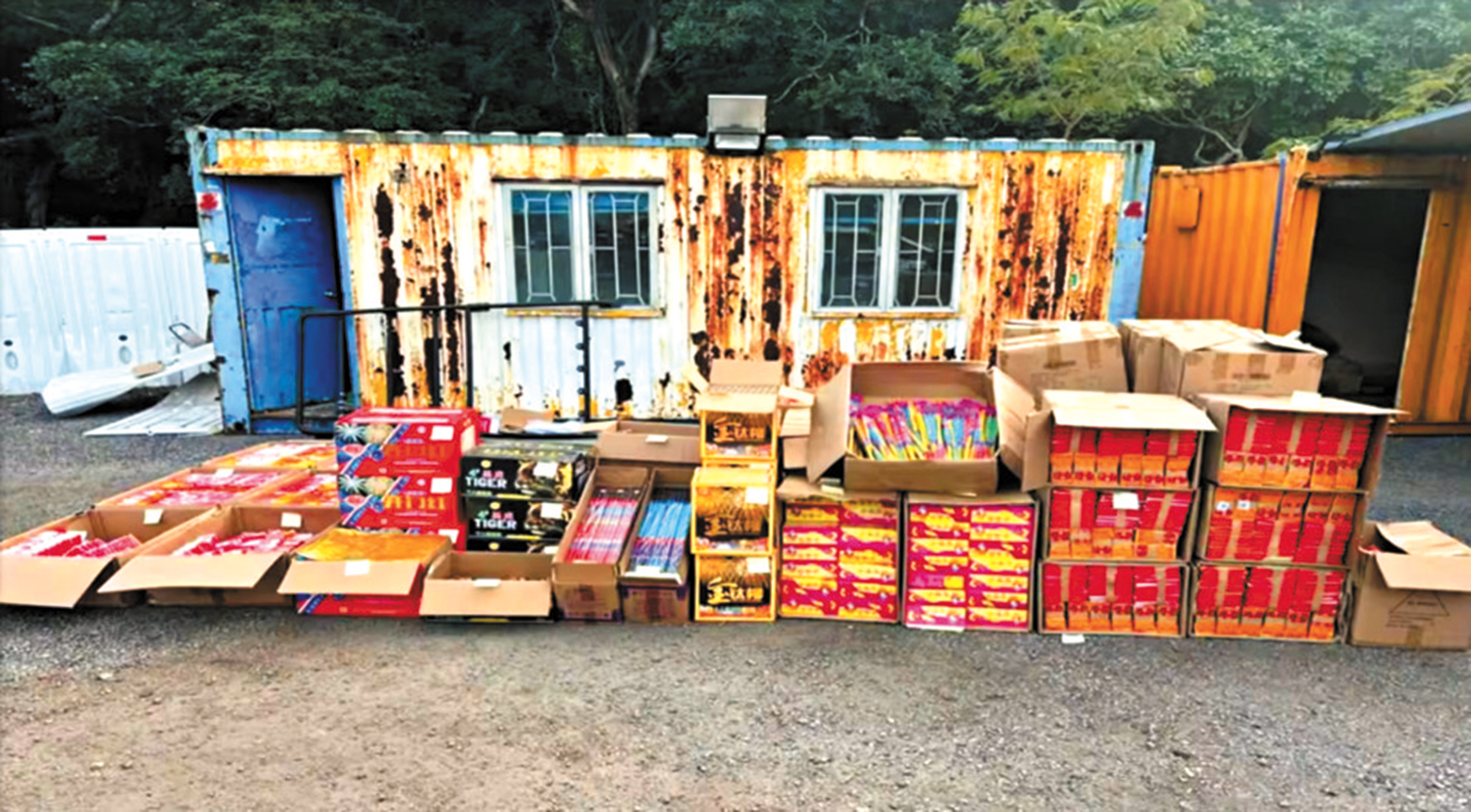 【大公報訊】記者林天報道:農曆新年期間,本港多區不時有人違禁燃放煙花。警方從打擊供應源頭着手,本周一(26日)在屯門大欖涌一帶展開針對非法藏有煙花炮仗行動,拘捕一名37歲男子,檢獲58箱煙花,總重約800公斤,市值約100萬元。