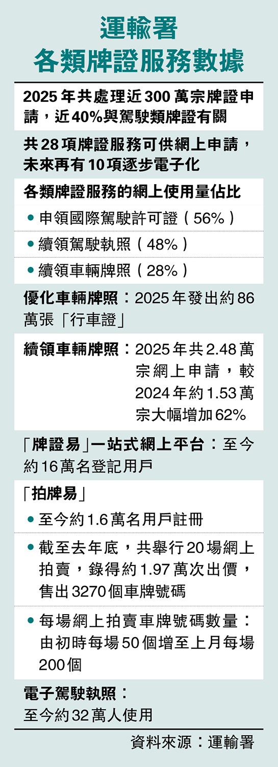 2025年共處理近300萬宗牌證申請,近40%與駕駛類牌證有關