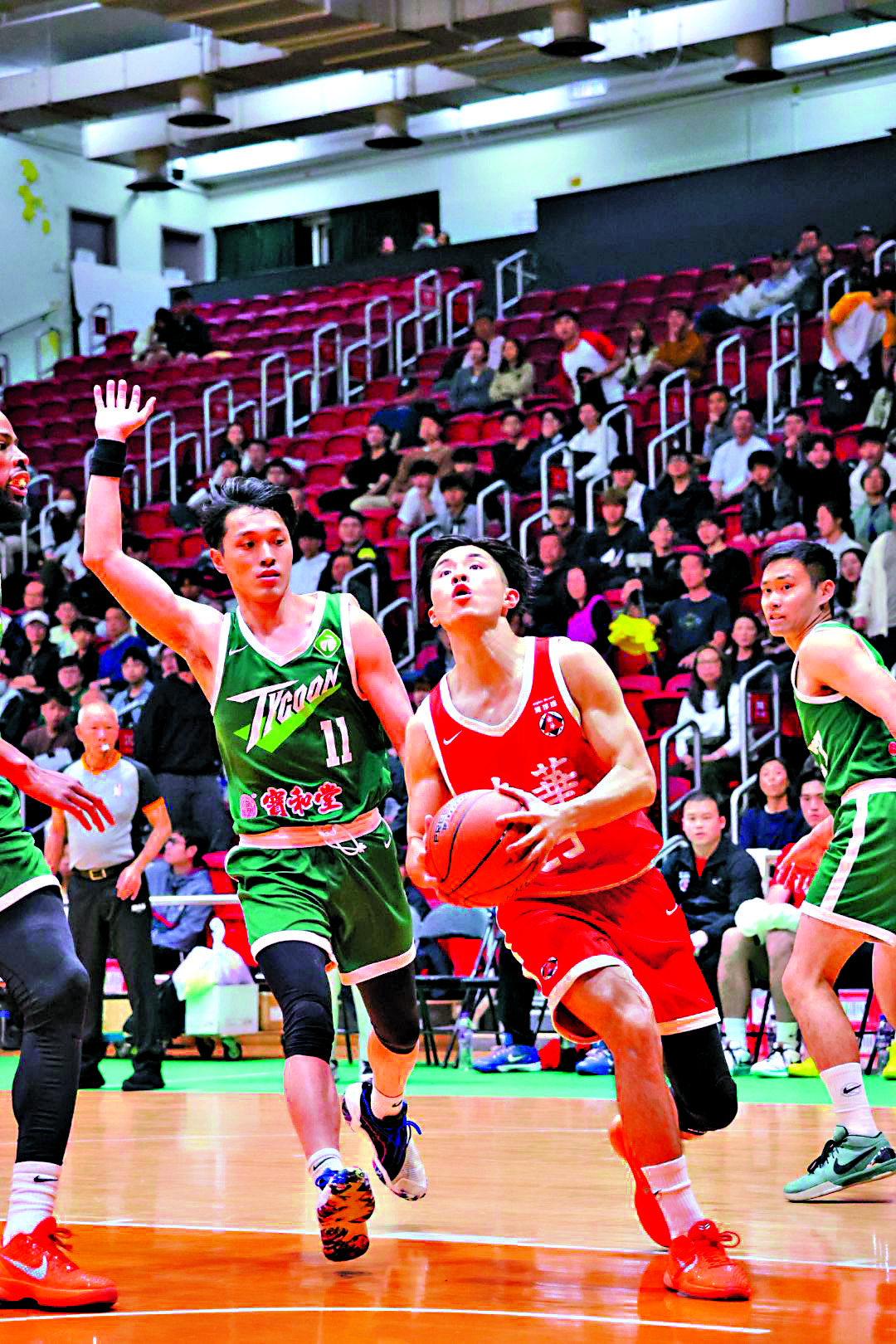 圖﹕南華男籃球員曾湛元(右)採取進攻。