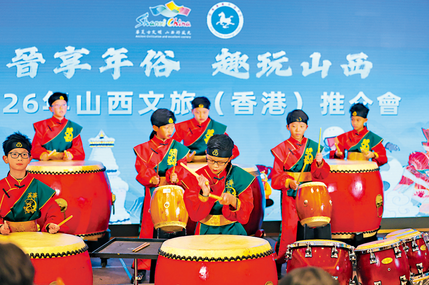 【大公報訊】大公文匯全媒體記者張弦、朱勁婷、林涌杰報道:由山西省文旅廳、山西省港澳辦公室、山西運城文旅局等單位聯合主辦的「晉享年俗 趣玩山西」山西文旅香港推介活動昨日舉行,現場除了介紹山西諸多世界聞名的歷史遺跡和自然景觀,以及獨特的美食,還有振奮人心的絳州鼓樂、優美的歌曲獨唱等豐富的演出。推介活動場外更有稷山螺鈿漆器髹飾技藝、太原刻瓷、木版年畫以及人像剪紙的山西非遺傳人展示,吸引不少人圍觀,現場氣氛熱鬧。