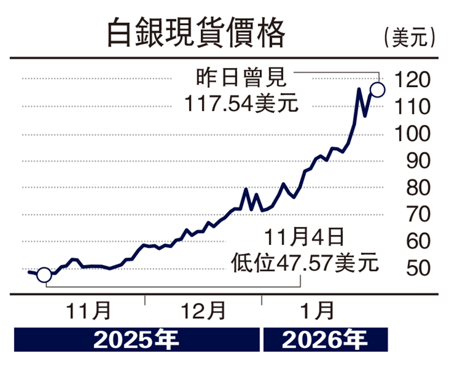 另外,全球地緣政治動盪及主要央行持續購金背景下,貴金屬整體吸引力亦大增。白銀作為價格相對「親民」的貴金屬,吸引大量尋求對沖通脹與貨幣貶值風險的投資者。而在投資屬性及工業需求的雙重推動下,白銀呈現「愈升愈有」行情。