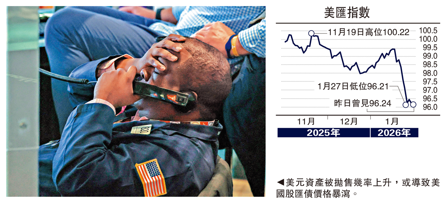 事實上,近周美匯指數跌勢轉急,與特朗普唱空美元言論有密切關係。就近日美元貶值情況,特朗普竟公然指現時美元價值「很好」,似乎暗示樂見美匯走弱,有助增強美國外貿出口競爭力,但此番言論一出,美國股匯債三殺隨即再現,本周三美匯指數應聲跌至近4年低位,道指則跌逾400點,險守49000點,年內升幅隨時一筆勾銷,轉升為跌,而美國30年國債價格又再下跌,債息回升至4.88厘。從上述市況來看,特朗普實施弱美元政策,表面上有利美國外貿出口,又可透過貨幣貶值縮減債務規模,但實際上對美國而言是得不償失,出現三大不利因素。
