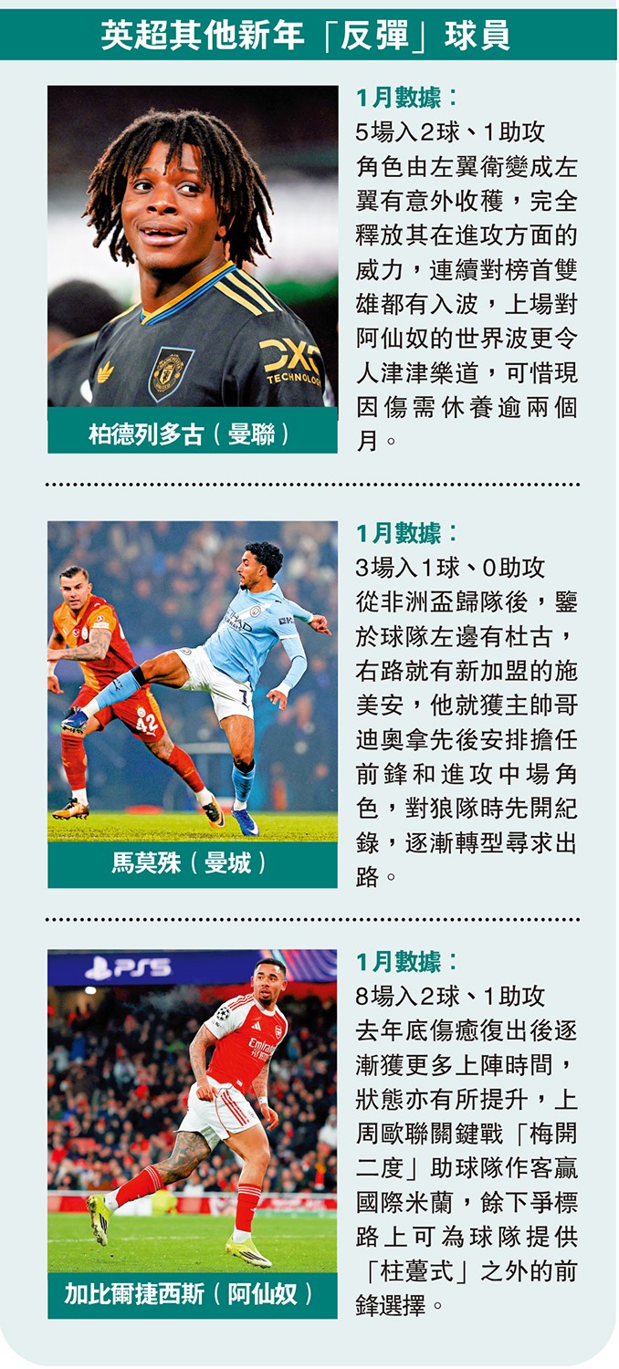 去年底傷癒復出後逐漸獲更多上陣時間,狀態亦有所提升,上周歐聯關鍵戰「梅開二度」助球隊作客贏國際米蘭,餘下爭標路上可為球隊提供「柱躉式」之外的前鋒選擇。