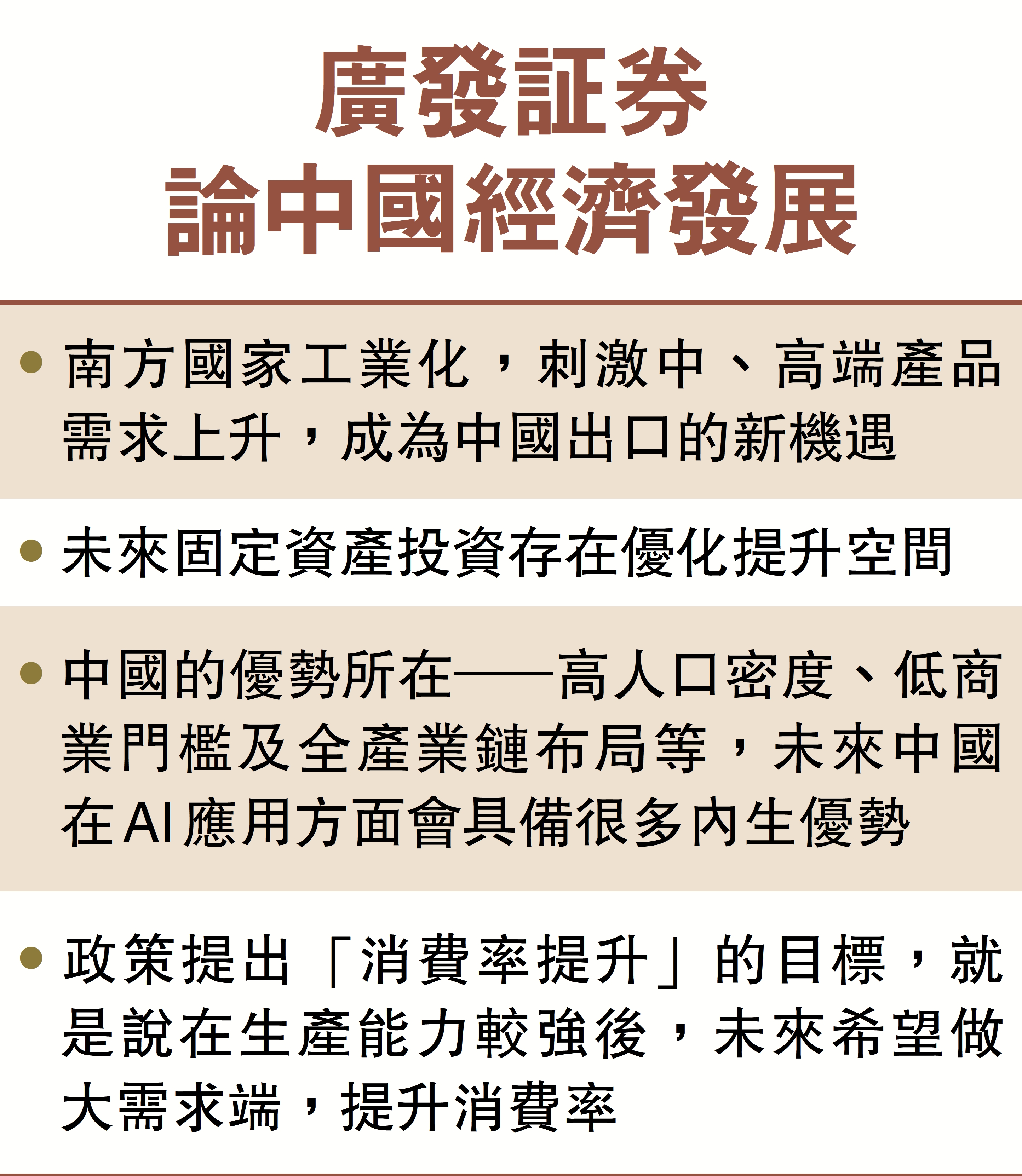 談及消費,郭磊表示,這是拉動經濟一大動力,看到「十五五」規劃在經濟發展總目標的表述上,與以往有一些細微變化,其中一個細節是政策明確提出「消費率提升」的目標,就是說在生產能力較強後,希望做大需求端,提升消費率,對應「十五五」期間的相關機會。例如:「十五五」規劃建議稿明確提出,要清理汽車、住房等領域不合理的限制性措施,這意味着汽車車牌管控、部分區域住房限購等方面,其實還有政策優化空間。