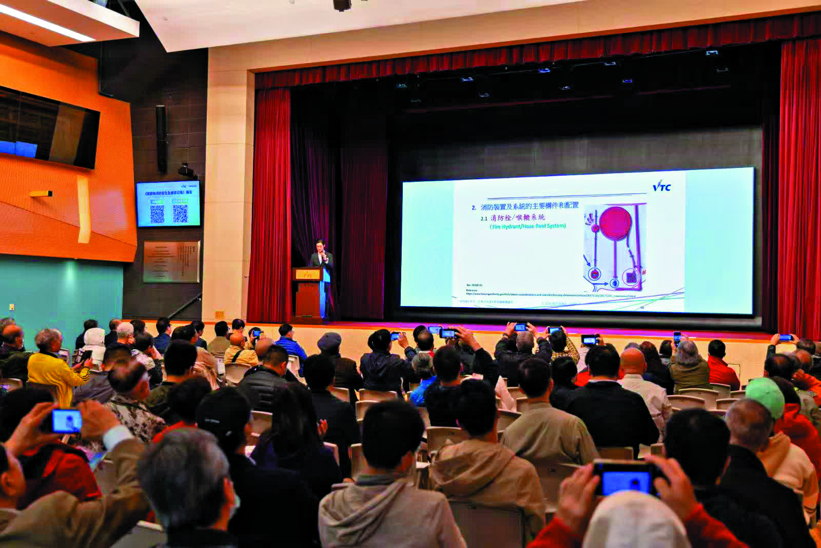 講座由消防處代表和職訓局專家主講,當中消防處高級消防隊長蘇津鋒介紹如何推動科技應用,包括去年引進的「物聯網火警偵測系統」先導計劃,以提升舊式樓宇消防安全水平。VTC相關範疇的專家,則講解住宅消防及建築安全相關法例與責任、住宅建築物及防火物料的測試標準及認可檢測,以及住宅物業日常安全管理與事故應變策略等,並附以實例分析。