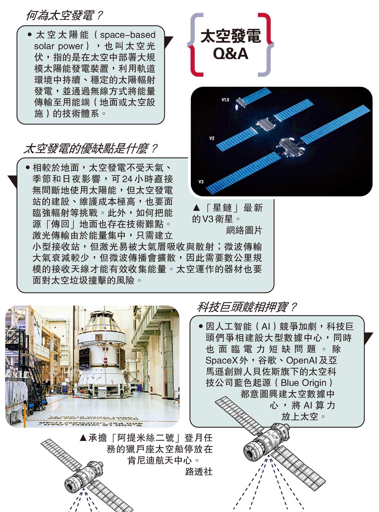 •因人工智能(AI)競爭加劇,科技巨頭們爭相建設大型數據中心,同時也面臨電力短缺問題。除SpaceX外,谷歌、OpenAI及亞馬遜創辦人貝佐斯旗下的太空科技公司藍色起源(Blue Origin)都意圖興建太空數據中心,將AI算力放上太空。